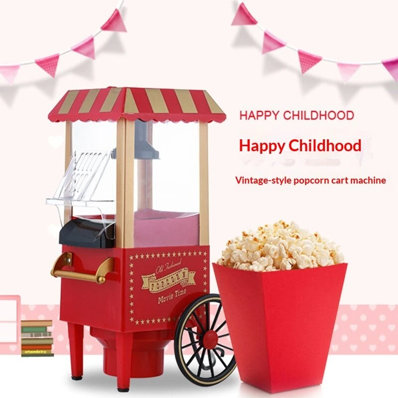 Comfook 1100W Mini Vintage Pushcart Popcorn Maker Home Use Machine with Wheels Transparent Chamber Easy Operation for Family Parties Movie Nights