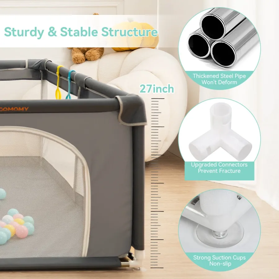 Frequently Asked Questions (FAQ) about This Comomy Sturdy Safety Play Yard Playpen w/ Soft Breathable Mesh Playard Activity Center