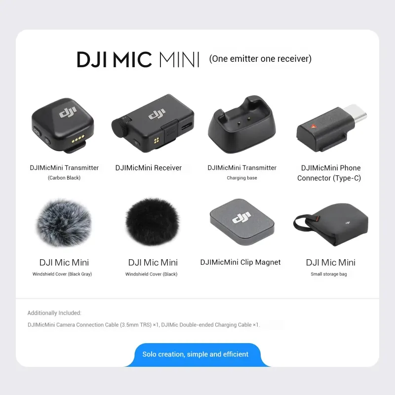 DJI Mic Mini Wireless Lavalier Microphone with Dual-level Noise Reduction 48H Battery 400m Transmission for Vlog YouTube Live Streaming Camera Mic