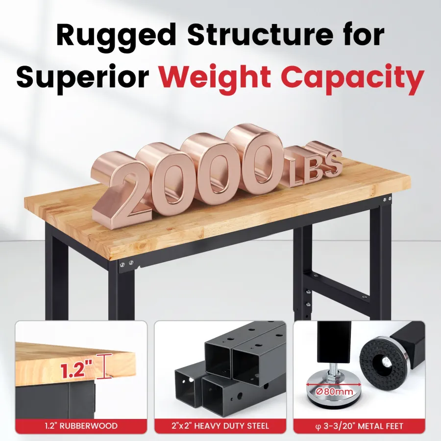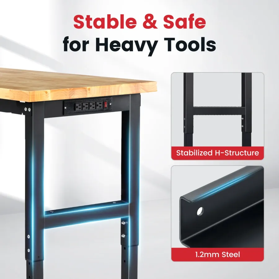 ENJOYWOOD 48 inch Worktable Workbench with Power Outlet 2000 lbs Load Capacity Garage Table Desk Adjustable Height Work Bench for Garage/Wood Shop/Office/Home