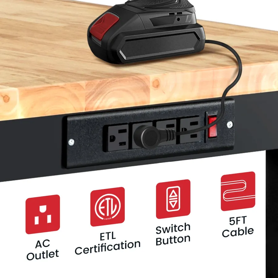Frequently Asked Questions (FAQ) about This ENJOYWOOD 48 inch Worktable Workbench with Power Outlet 2000 lbs Load Capacity Garage Table Desk Adjustable Height Work Bench for Garage/Wood Shop/Office/Home