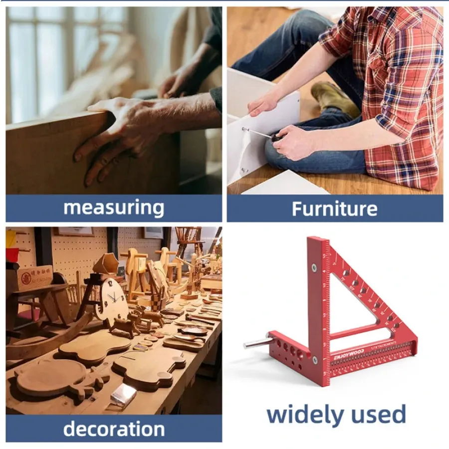 Frequently Asked Questions (FAQ) about This ENJOYWOOD 5 inch 3D Multi-Angle Measuring Ruler Square Ruler 22.5-90 Degree Protractor Protractor Hole Positioning Inch/MM Imperial Metric Durable Aluminum Alloy T-Type Triangle Scriber Tool Ideal for Engineers / Carpenters / Craftsmen