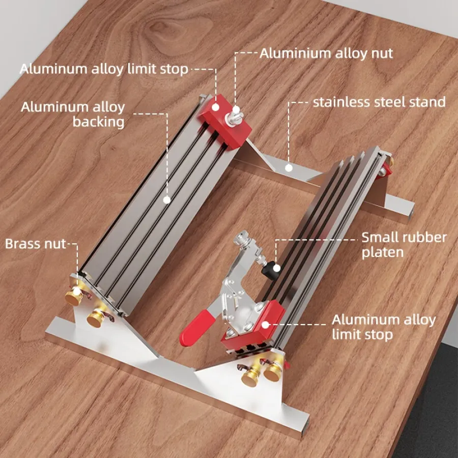 Frequently Asked Questions (FAQ) about This ENJOYWOOD Adjustable Spline Jig for Table Saw & Router Table Silver Aluminum Alloy Material 1/2in-11in Project Size Compatibility with 4 Molded Flip Stops for Precise Joinery and Smooth Operation