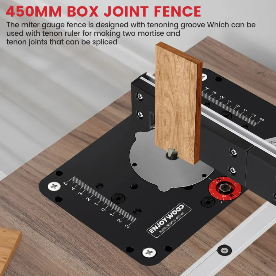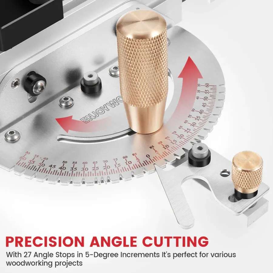 ENJOYWOOD Brass Handle 450mm 27 Angle Miter Gauge With Box Joint Jig Track Stop Table Saw Router Miter Gauge Saw Assembly Ruler For Woodworking Tools