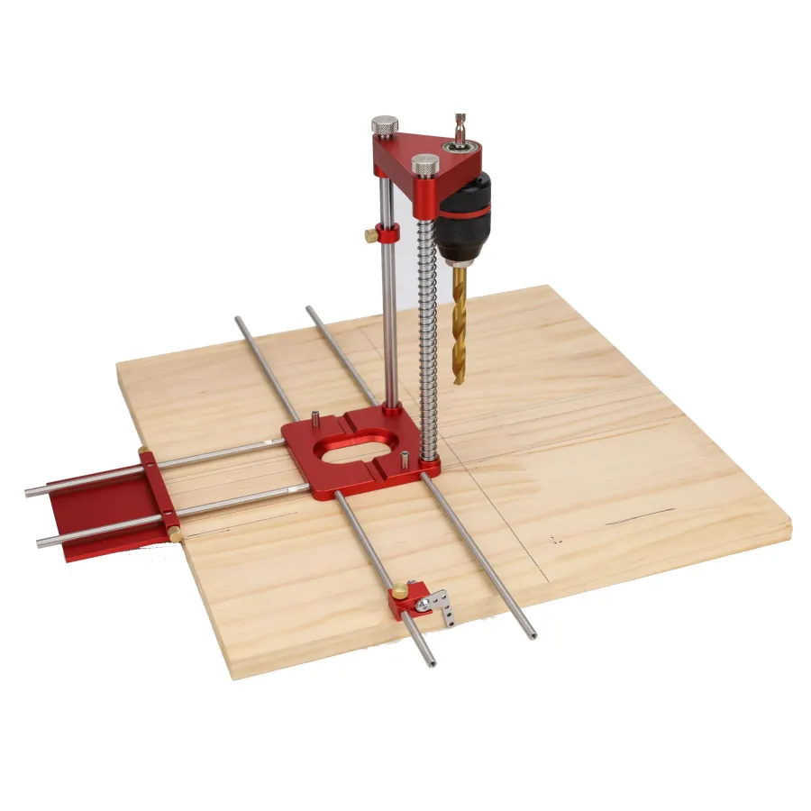 Frequently Asked Questions (FAQ) about This ENJOYWOOD Upgraded All Aluminum Alloy Adjustable Woodworking Drill Locator Guide With 8pcs Extension Rods Flip Stops and Wrench For Positioning Tools Hole Drill