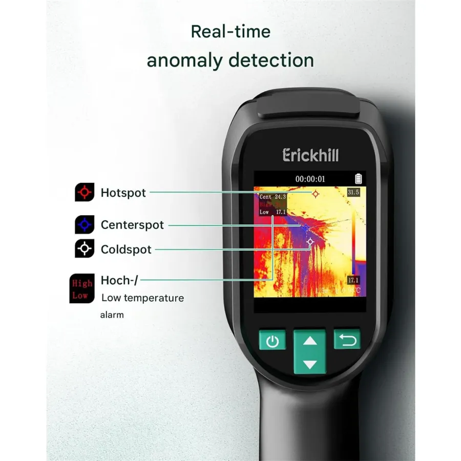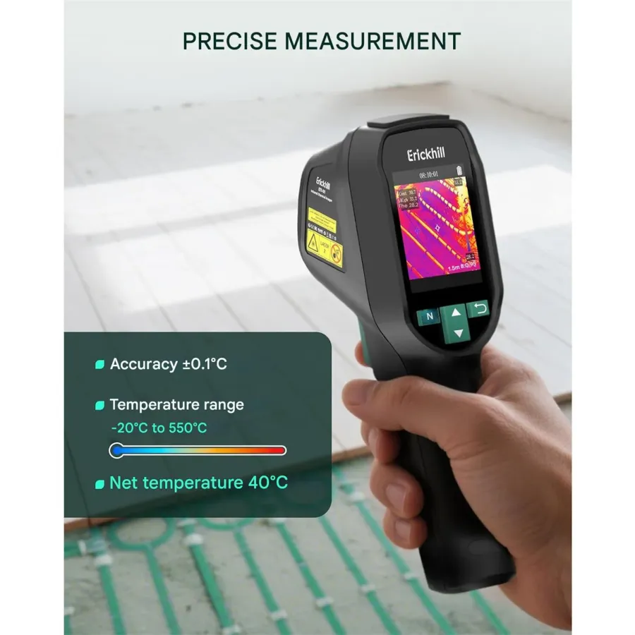 ERICKHILL ETI-01 Thermal Imaging Camera 240 x 240 Resolution 20 Hz Refresh Rate -20C to 550C Portable Infrared Device HVAC Inspection Tool Laser Pointer Long Battery Life CE Certified
