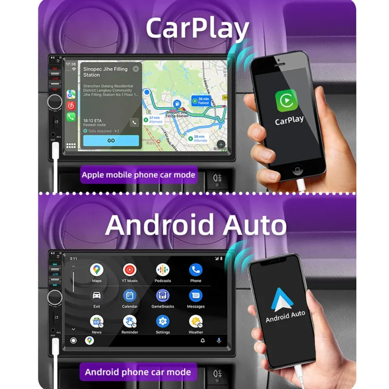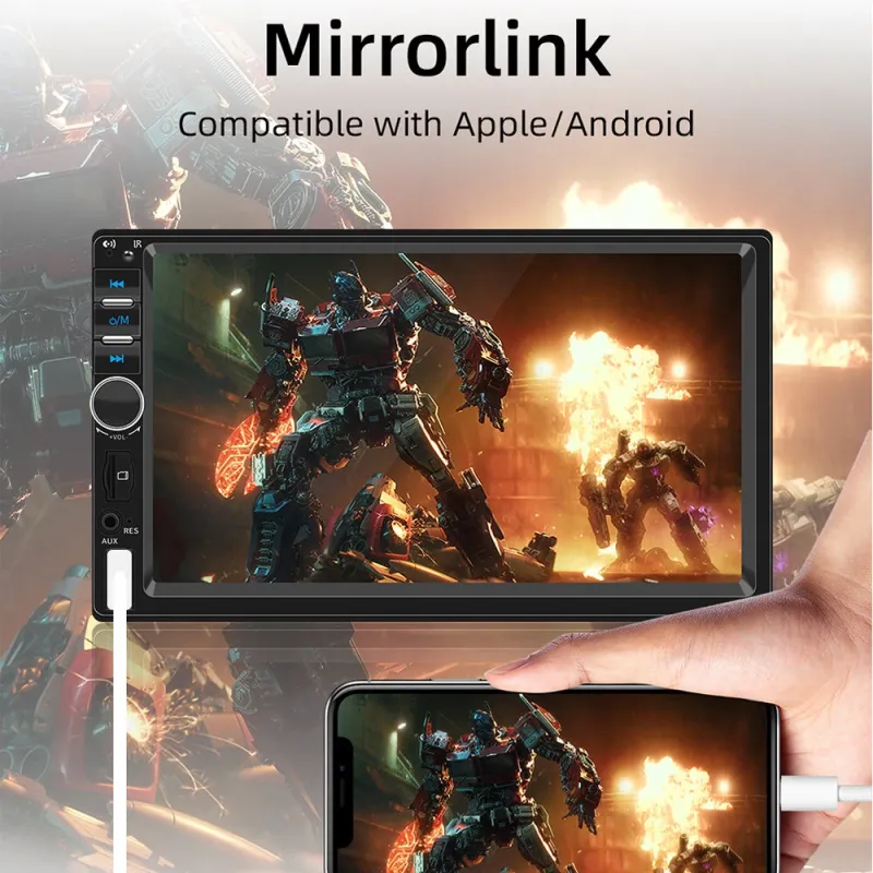 F7018C 7 Inch Touch Screen Single 1DIN MP5 Car Navigation System USB Bluetooth FM Radio Android Auto Apple CarPlay