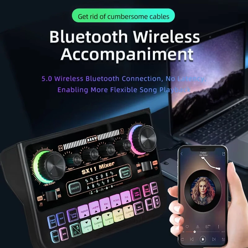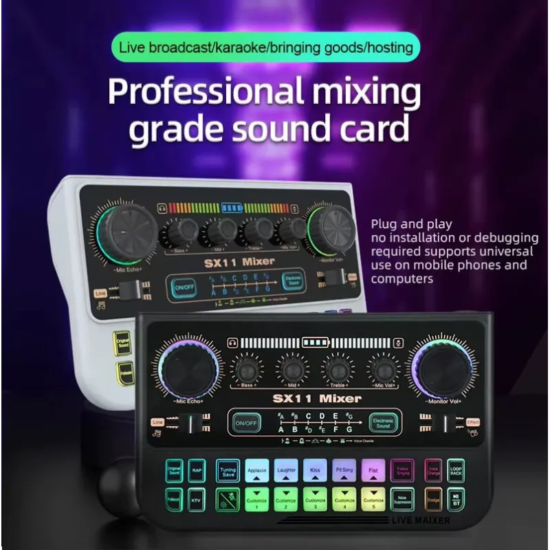 FUHAM SX11 Professional Mixing Grade Sound Card Audio Interface Sound Card 48V Power Live Streaming Recording Podcast Studio for YouTube Computer/Phone Sound Card Plug and Play