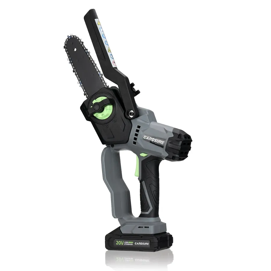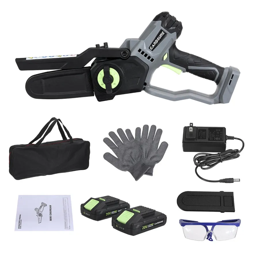 Frequently Asked Questions (FAQ) about This GARDSURE Mini Chainsaw 6 inch Electric Chainsaw Cordless Brushless Motor Chainsaw with 2 Pack 20V 2.0Ah Li-ion Batteries Chainsaw for Tree Branch Wood Cutting Fruit Tree Pruning and Logging