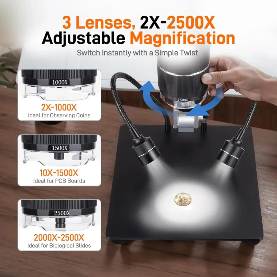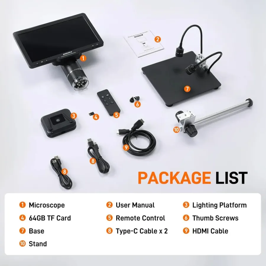 Frequently Asked Questions (FAQ) about This GOCHIFIX 10.1'' 3 Lens 2K Digital Microscope 2X-2500X Soldering Microscope for Electronics Repair Coin Microscope with IPS Screen Microscope