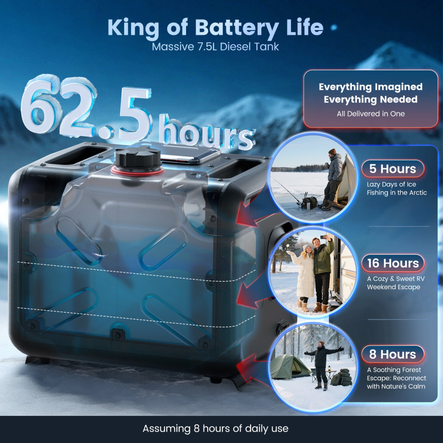 HCALORY TB MAX 8KW Diesel Heater All in One 7.5L Diesel Air Heater 220/12/24V Parking Heater with App Control CO Alarm Wireless Temperature Sense and Altitude Mode for RV Garage Camper 2025 Upgraded