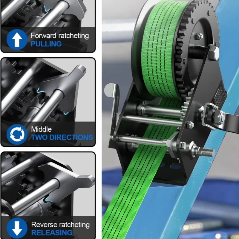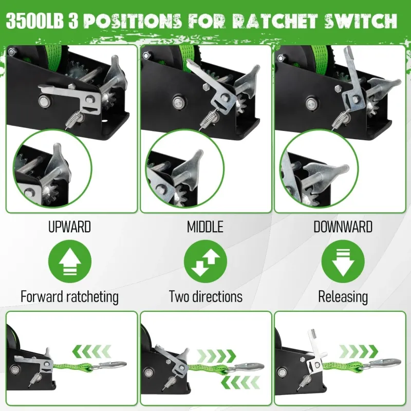 Heavy Duty 3500lbs Boat Trailer Winch with 33ft Green Strap Manual Winch Handle Dual Gear 4 1/8 1 Ratio for Boats Jet Skis Marine