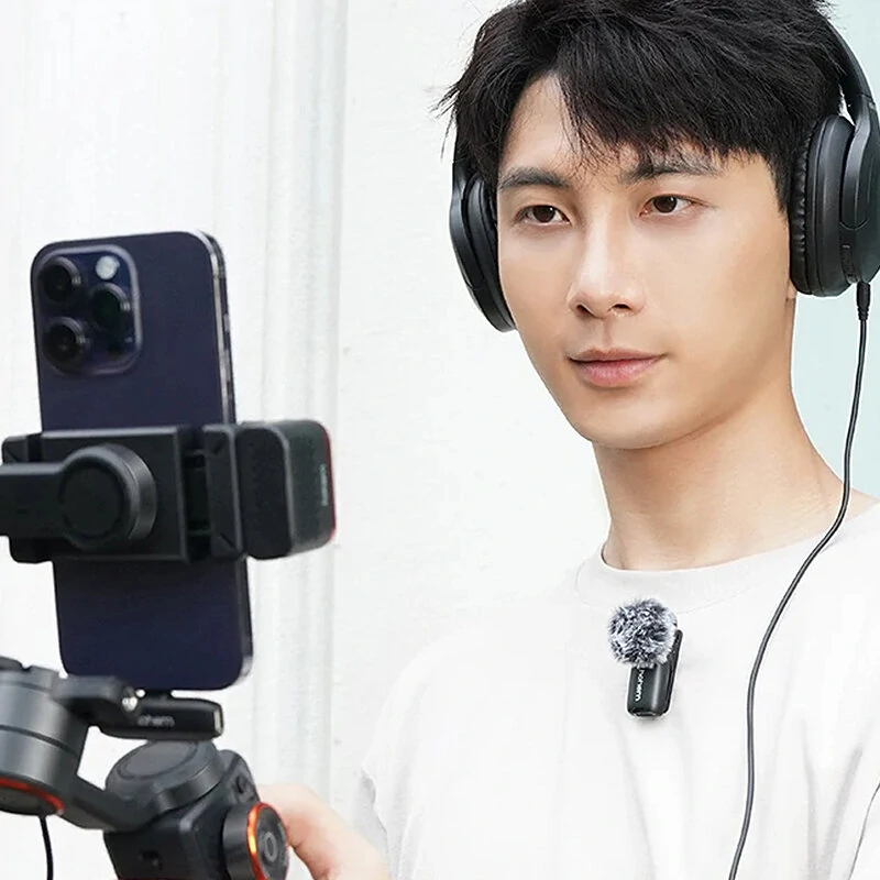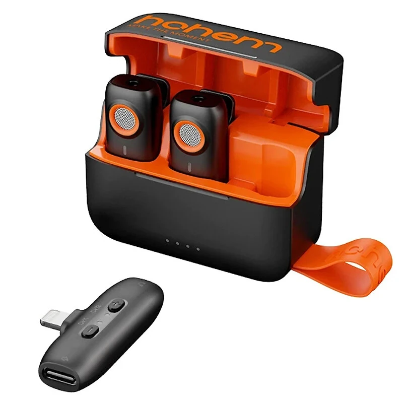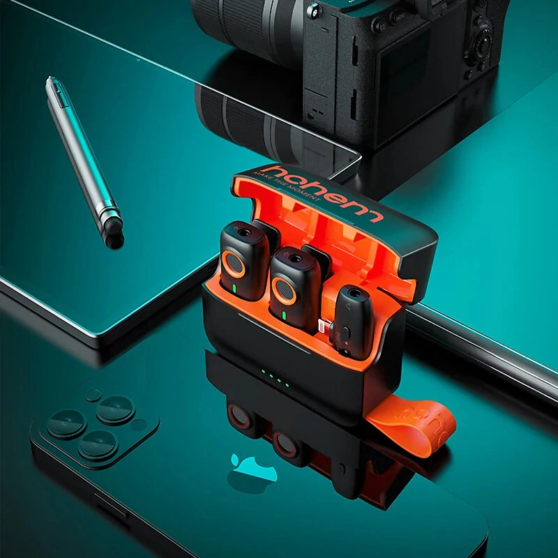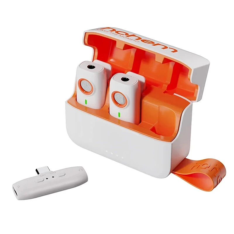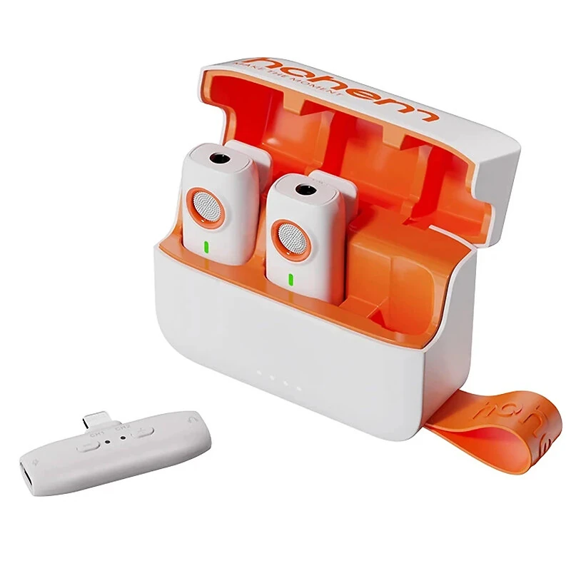 Hohem MIC-01 1-to-2 Wireless Lavalier Microphone CD Lossless Sound 360 Omnidirectional Sound Pickup Noise Cancelling Recording Live Streaming Mic with Backup Stroage Plug and Play for iPhone Android MFI Certificated