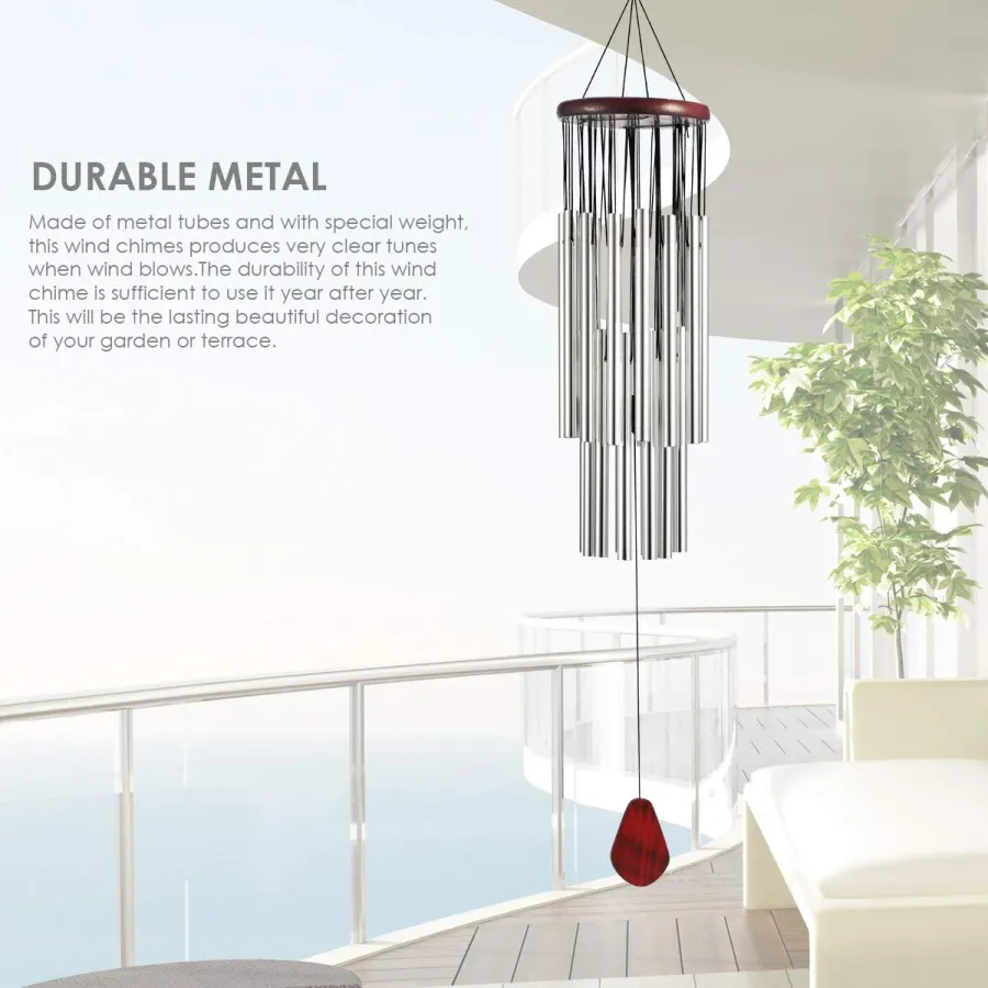 Home 27 Silver Tubes Wind Chimes Church Bells Hanging Decorations