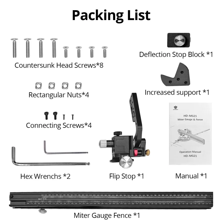 Frequently Asked Questions (FAQ) about This HONGDUI HD-KS22 Aluminum Miter Gauge Fence Extended Support for Woodworking Miter Gauge Table Saw Router Table