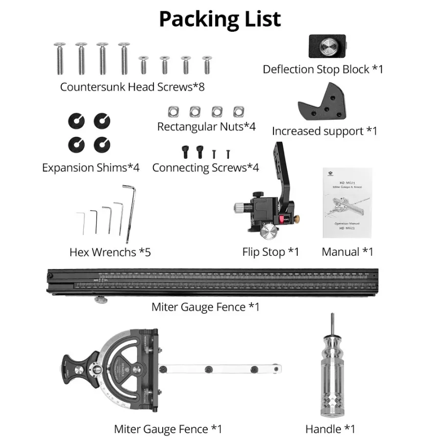 Frequently Asked Questions (FAQ) about This HONGDUI HD-MG21 Precision Miter Gauge For Table Saw With Extended Fence And 0.02mm Micro Adjustable Flip Stop Router Table Precision Angle Setting