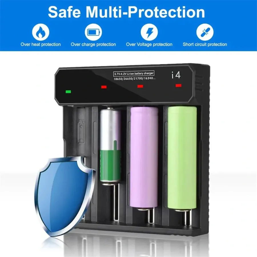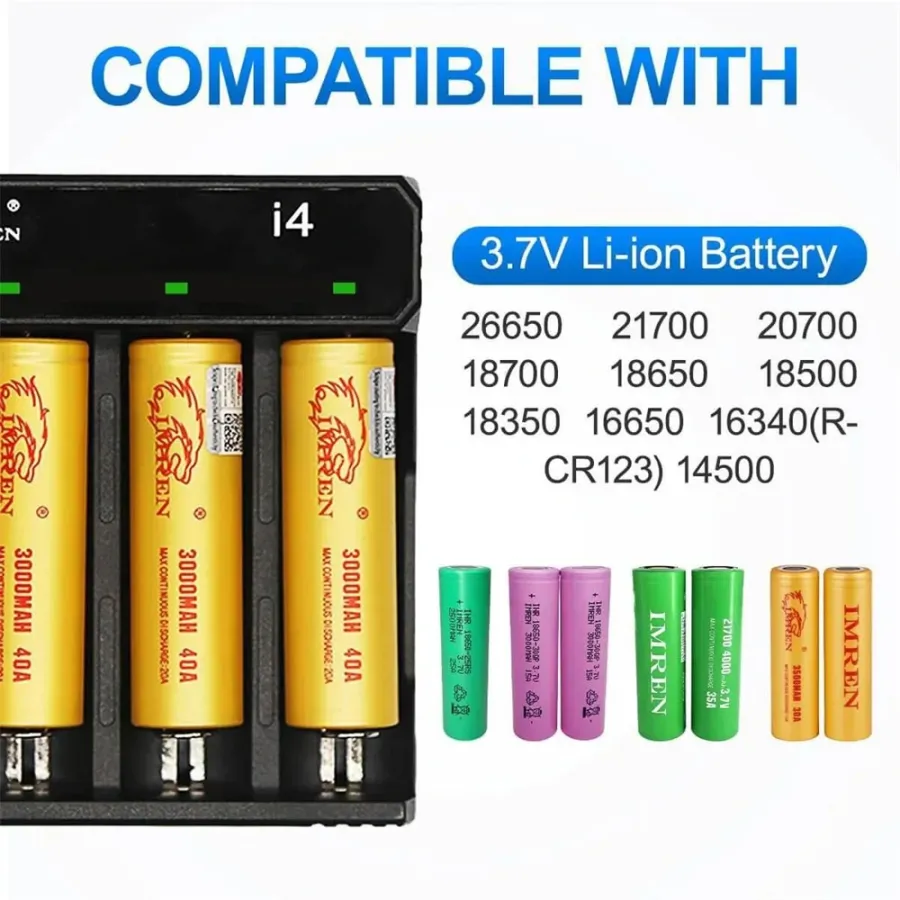 Frequently Asked Questions (FAQ) about This I4 4-Slot with USB Type-C Port Universal Rechargeable Battery Charger Intellegent Charger for Flashlight RC Toys Home Tools Battery Charger For Li-ion 18650 21700 26650 AA AAA Batteries Cell