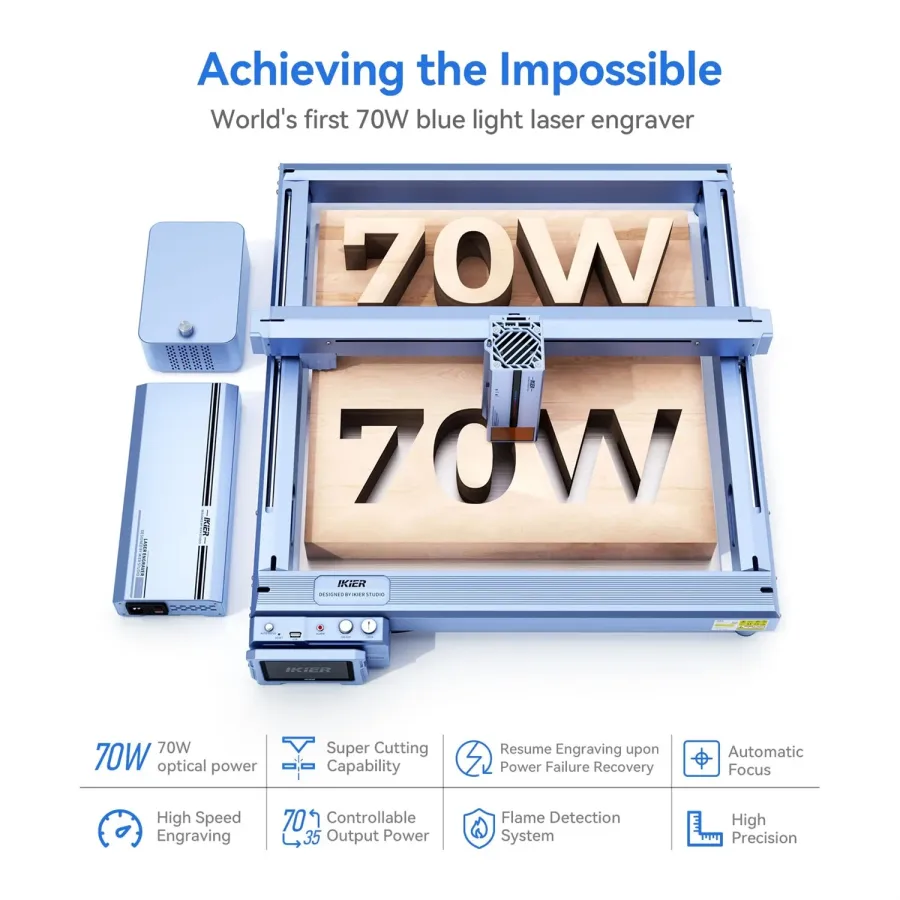 IKIER K1 Pro Max Laser Engraving Machine 70W Optical Power High Speed 900mm/s Precision Cutting Autofocus Automatic Air Assistance Engraving Size 410x410mm