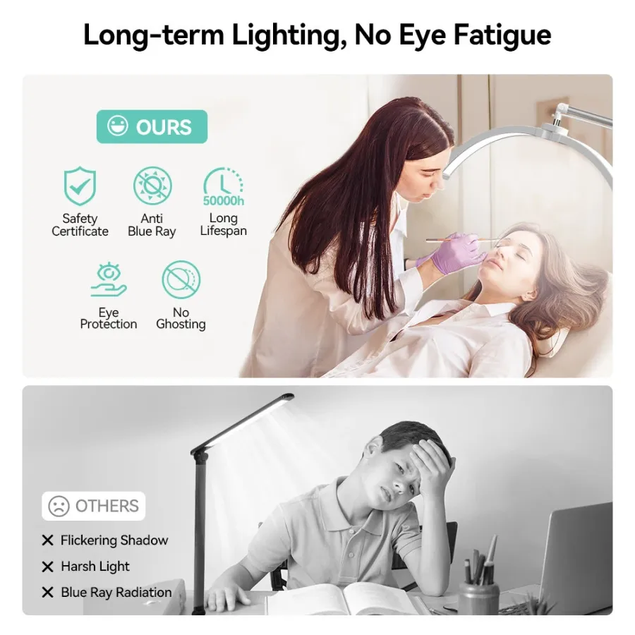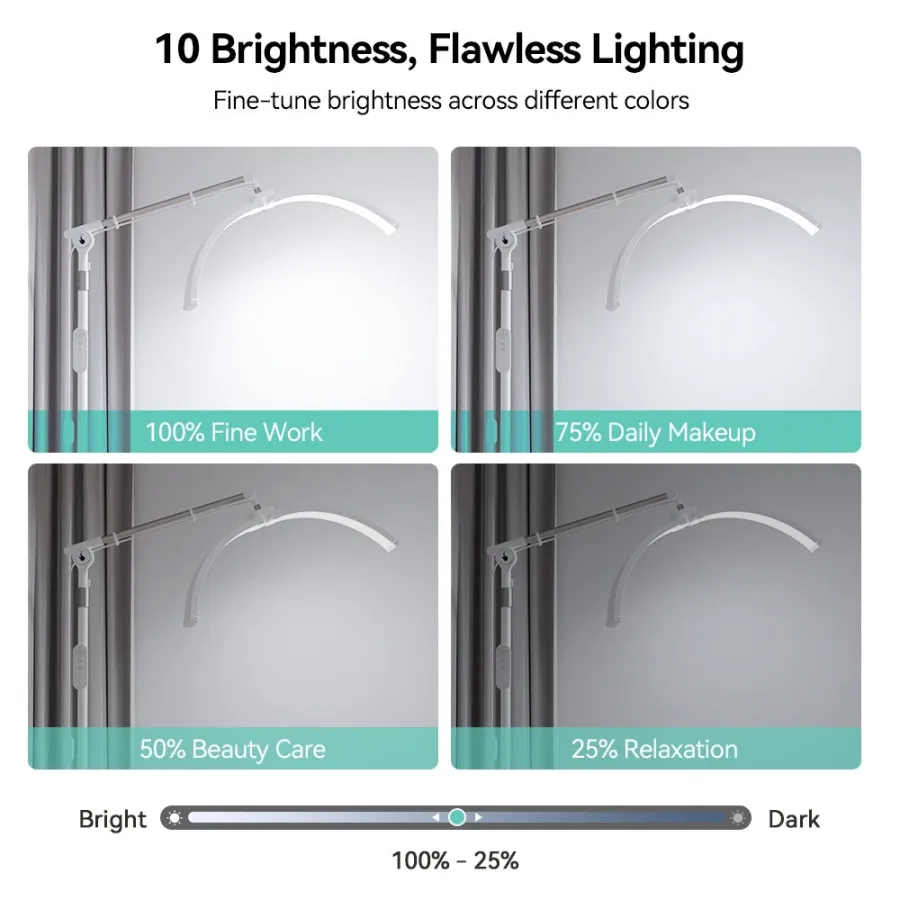 Frequently Asked Questions (FAQ) about This Janolia Floor lamp Lash Light for Eyelash Tech LED Half Moon Light Lash Lamp Esthetician Light Adjustable Brightness 360Rotating for Lash Tech Tattoo Beauty