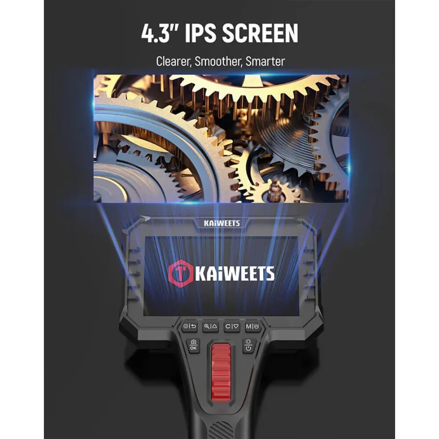 KAIWEETS KBA02 Two-Way Articulating Borescope Camera 1920x1080 HD Display 4.3 Inch Screen 6.5mm Lens LED Lights 360 Rotation Industrial Endoscope Inspection Tool