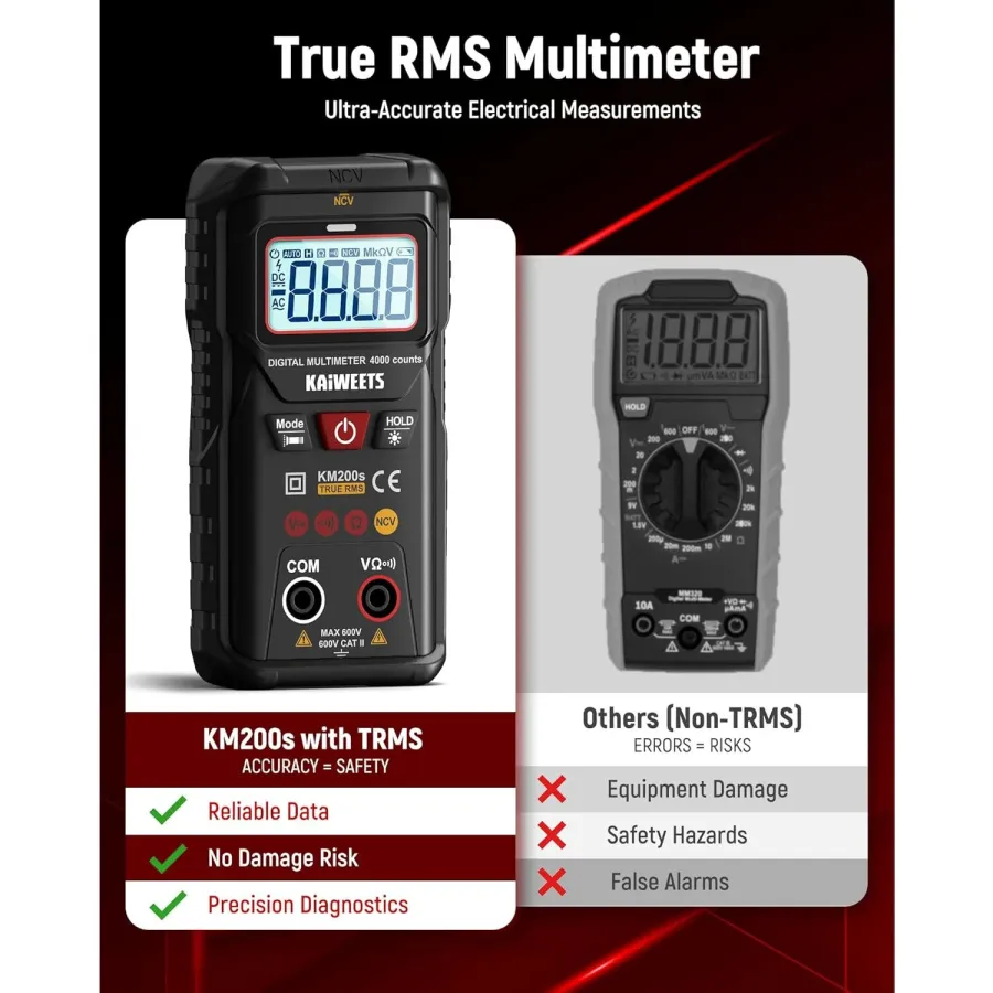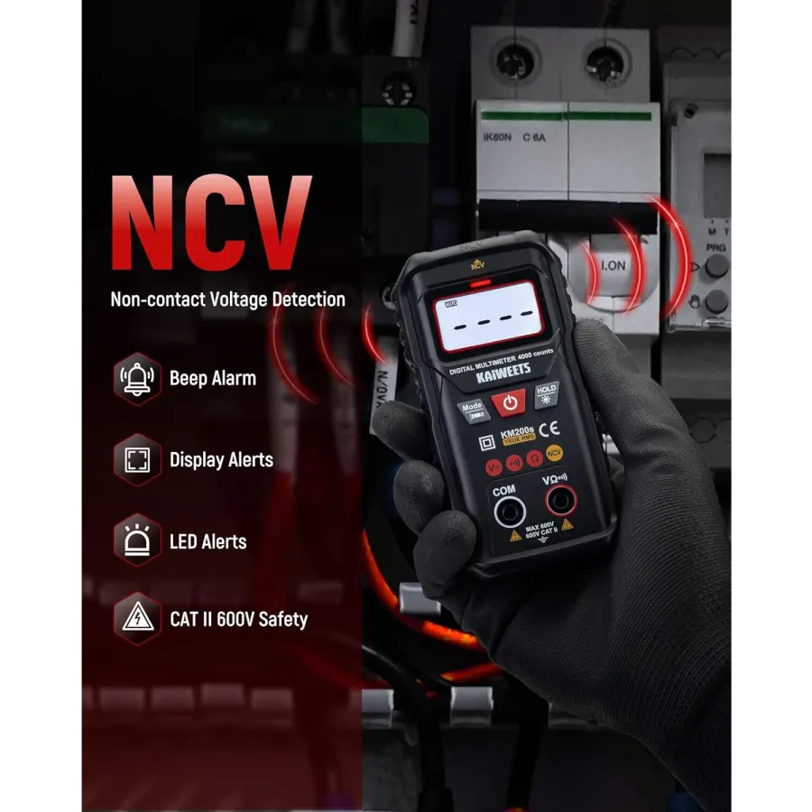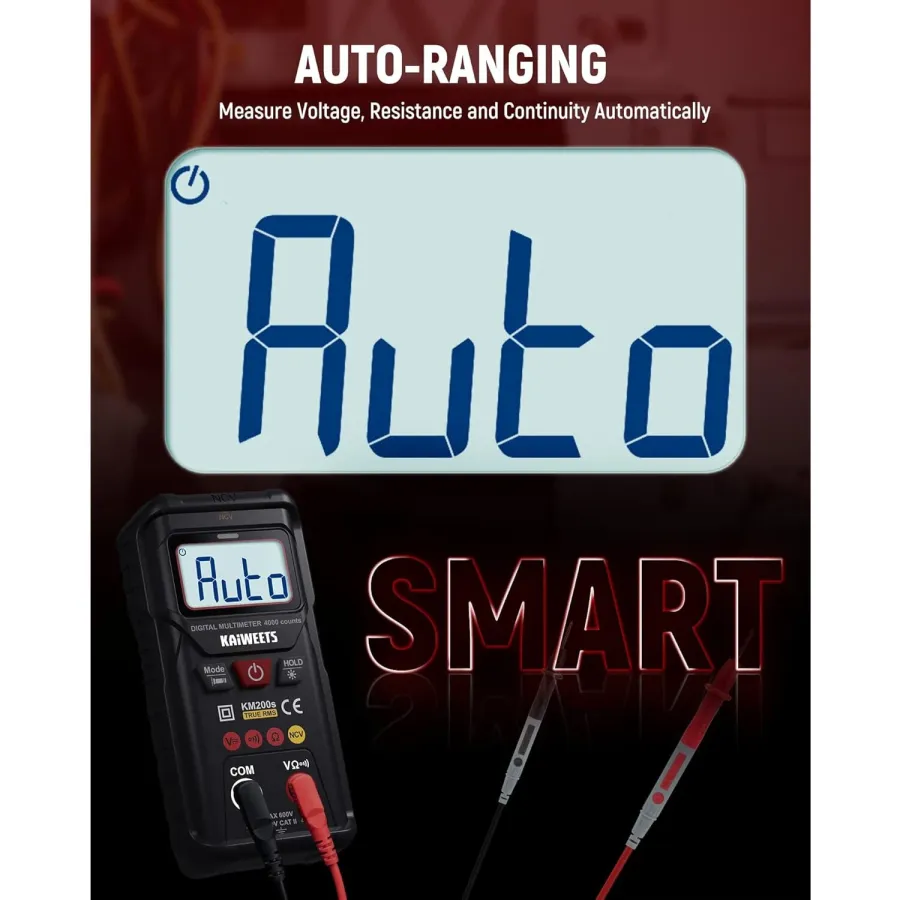KAIWEETS KM200s Digital Multimeter True RMS 4000 Counts Auto Ranging AC DC Voltage Tester Non Contact Voltage Detector Smart Measurement