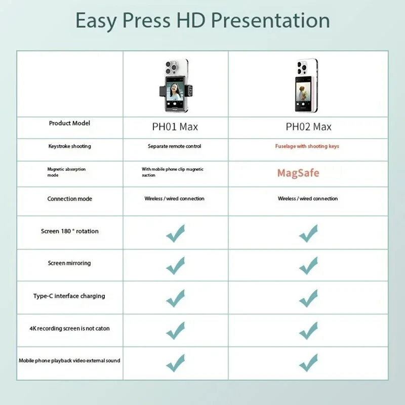 KingMa PH02 Max Magnetic Selfie Live Streaming Vlog Display Screen 2.4G Wireless Connect Suitable for iPhone
