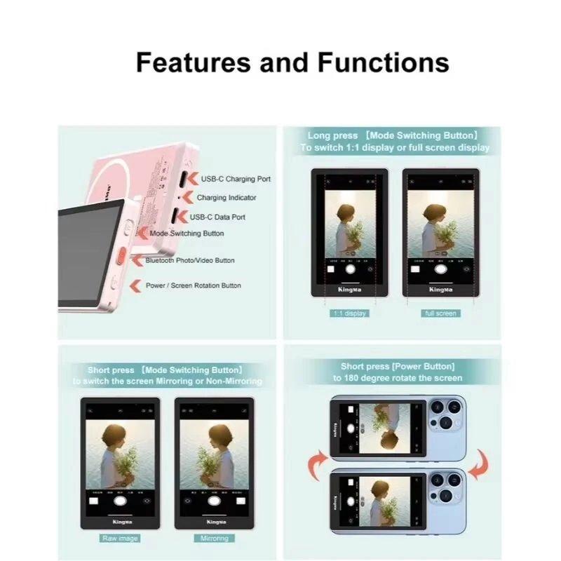 Kingma VL-PH02 Max Selfie Stick Magnetic Selfie Live Streaming Vlog Display Screen Photo for iPhone 16 16 Pro 15 14 13 Pro Max for Samsung Galaxy S25 Pro for Huawei Pura X