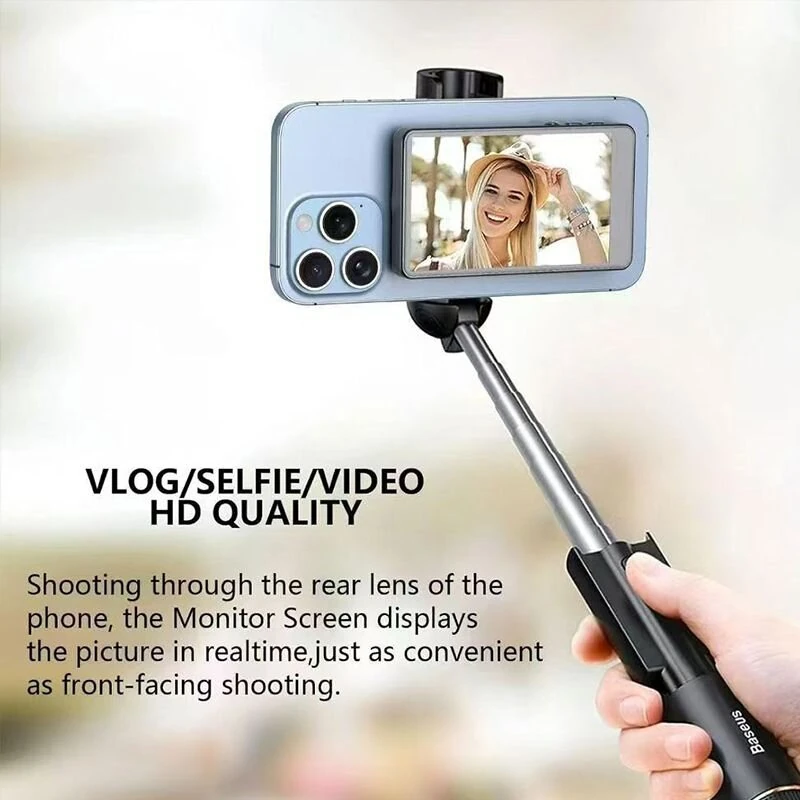 Magnetic Phone Selfie Monitor Screen for Smartphone Rear Camera Selfie with bluetooth Button Vlog Live Stream for iPhone Android Phone