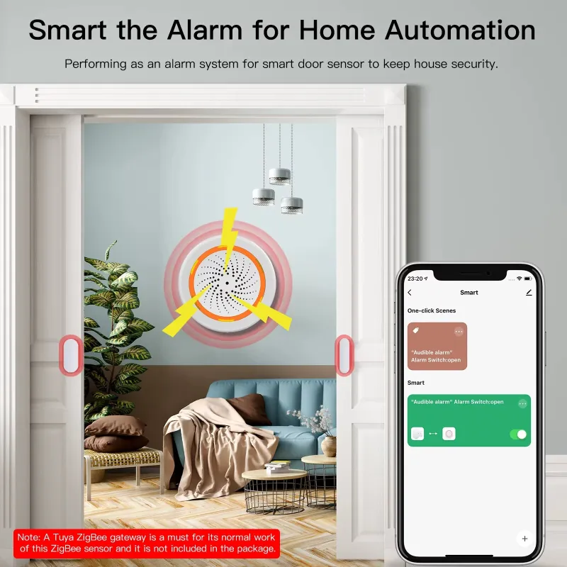MOES Tuya WiFi/ZigBee3.0 Smart Sound and Light Siren Sensor 90dB Smart Life Siren Home Security System Tuya Gateway Hub Work with Alexa