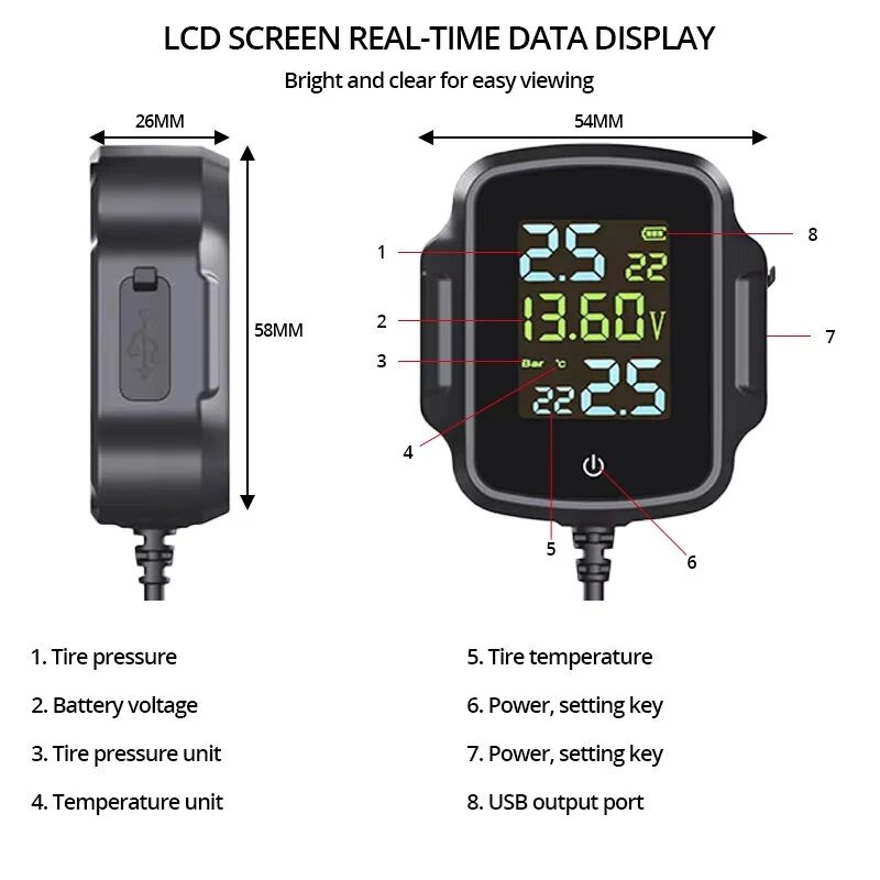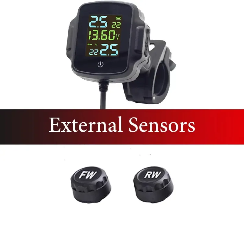Motorcycle TPMS Tire Pressure Monitoring System QC3.0 Fast Charging USB Output Real Time Temperature Alarm IP67 Waterproof Anti Theft External Sensors Long Battery Life