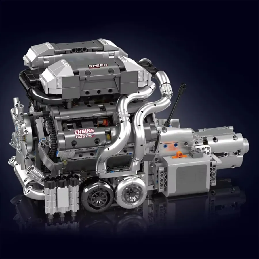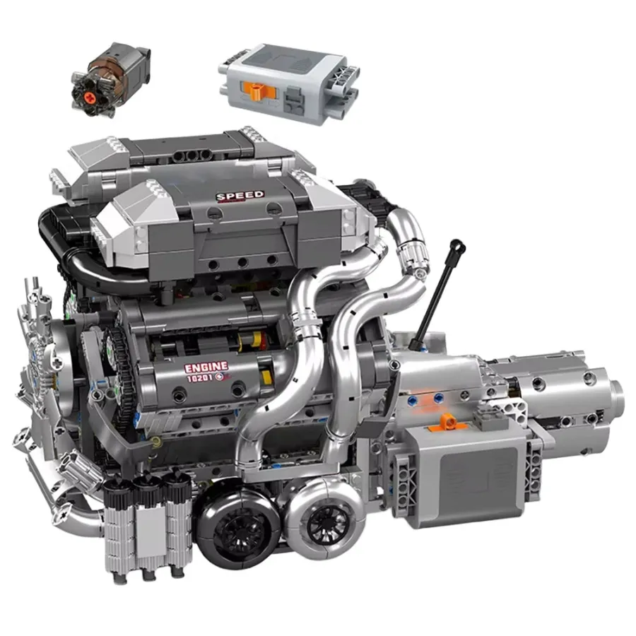 Mould King 10201 Technical Car Building Block Motorized Bug SuperCar W16 Engine with Gearbox Building Block Brick Kids Gift