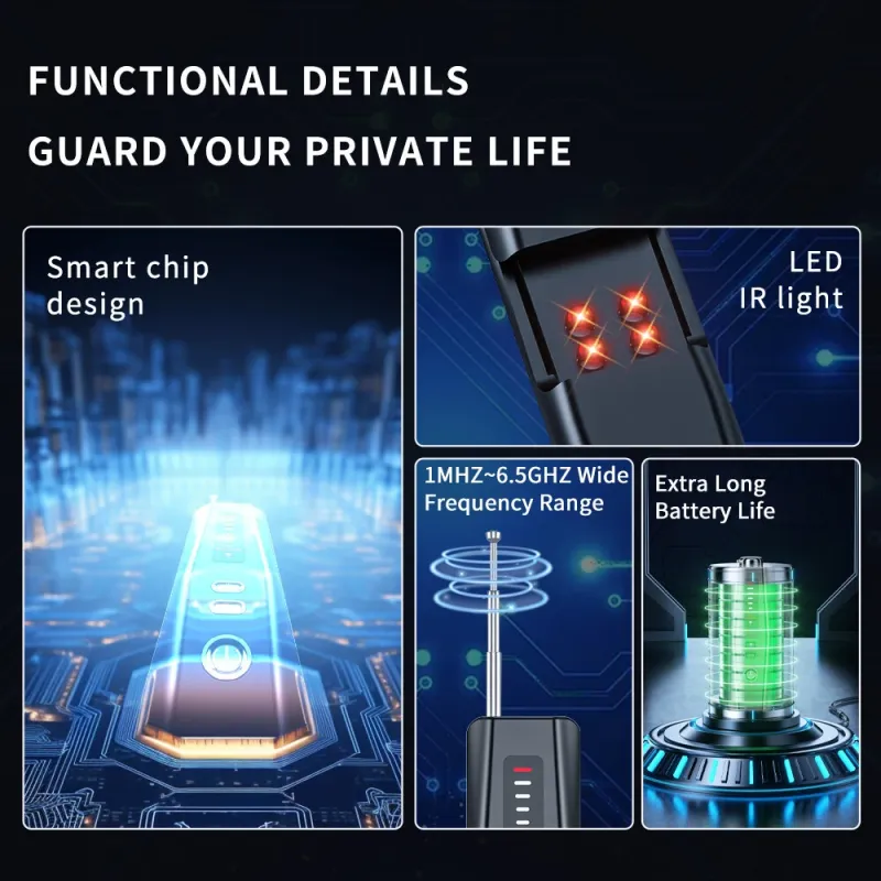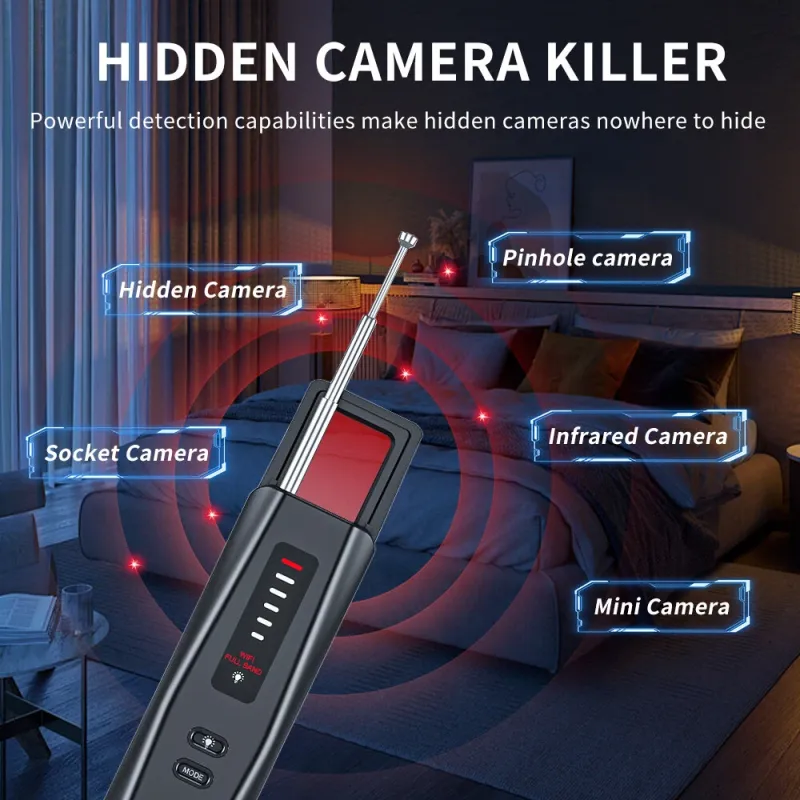 Multi-functional Camera Detector 500mAh 1MHz-6.5GHz Small Camera Finder Adjustable Sensitivity Portable Anti-Snooping Device Type-C Rechargeable Battery Long Battery Life
