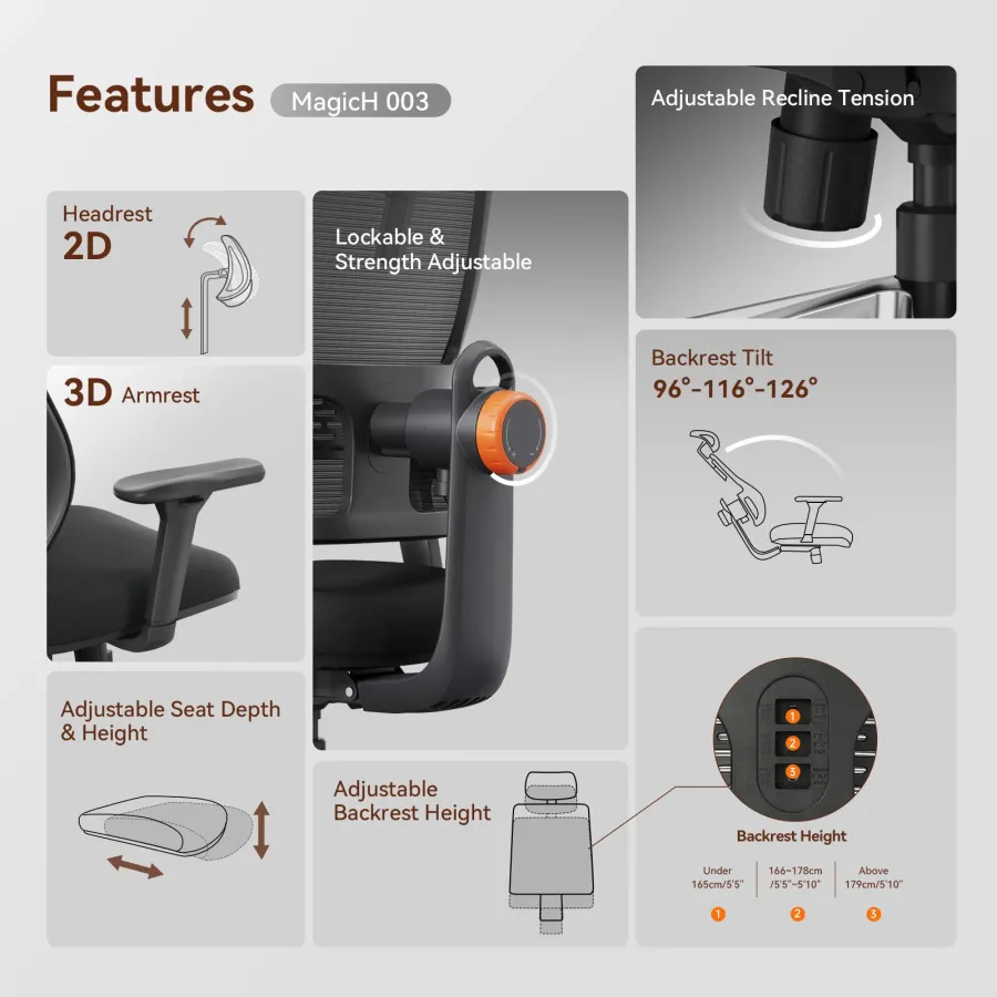 Frequently Asked Questions (FAQ) about This NEWTRAL MAGICH003 High Back Ergonomic Chair Auto-Following Backrest Adjustable Headrest Seat Depth Adaptive Lower Back Support 100-300 lbs Height Capacity