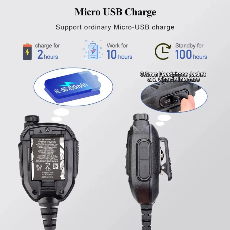 RETEVIS HK008 Adjustable Volume Shoulder Speaker Microphone with Removable Battery Clear Sound Amplifier for Two Way Radios 360 Rotating Belt Clip Walkie Talkie Accessory