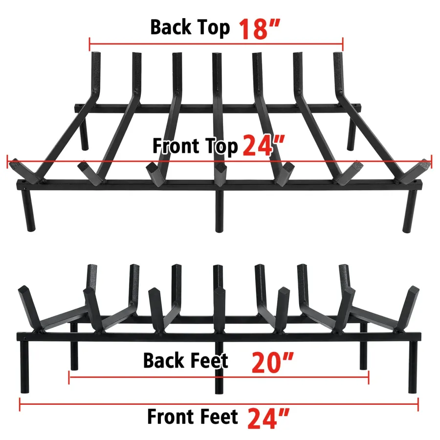 SINGLYFIRE Fireplace Grate 24 inch Heavy Duty Solid Steel Fireplace Log Holder 3/4" Bar Fire Grate Wrought Iron Wood Stove Holder Firewood Burning Rack for Indoor Outdoor Chimney Hearth Kindling Tool