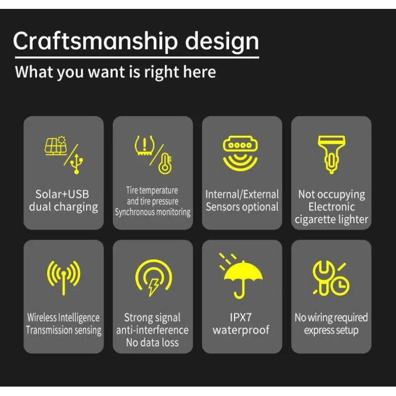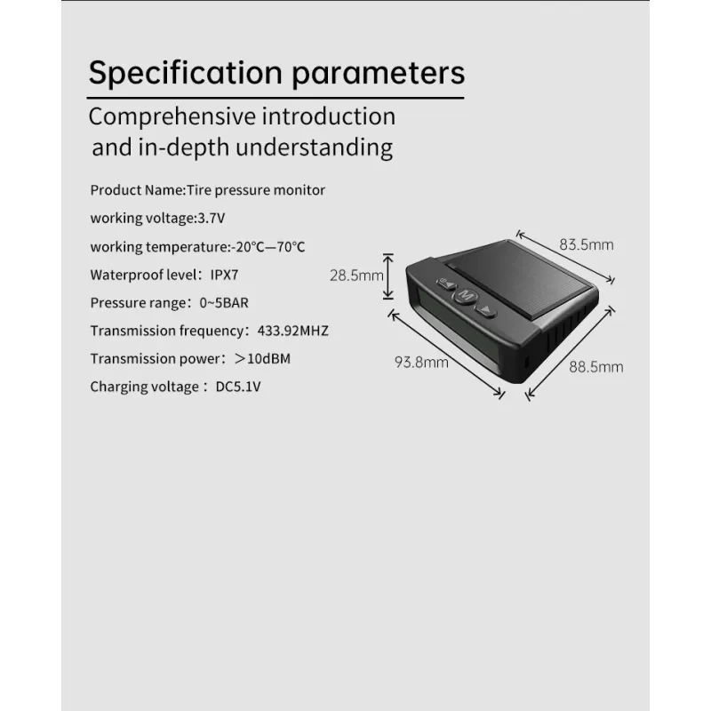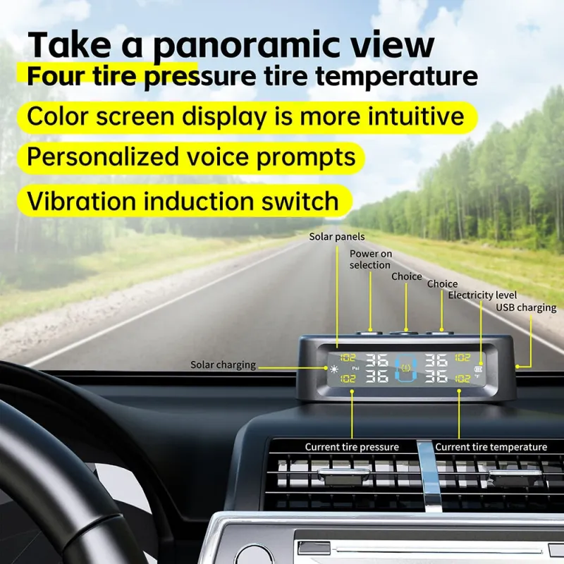 Solar Car TPMS Tire Pressure Monitoring System Automatic Safety Alarm System Tire Temperature Monitoring with 6 Sensors for Truck RV