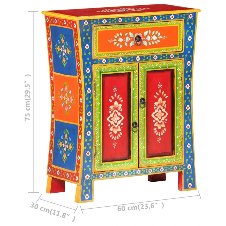 Solid Mango Wood Hand Painted Sideboard 23.6''x11.8''x29.5''
