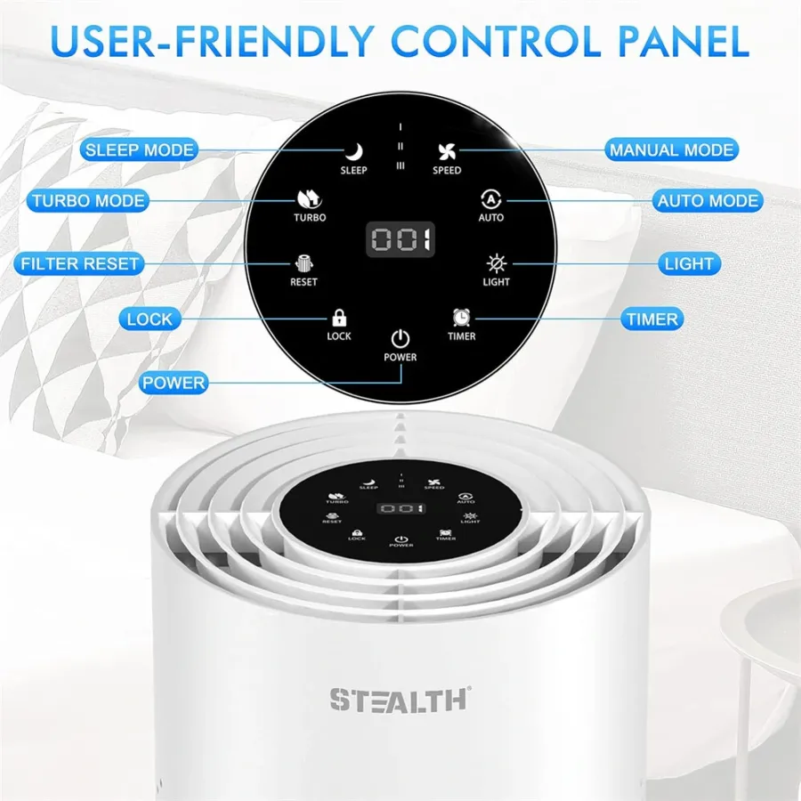 STEALTH Air Purifier for Home, H13 True HEPA Filter, Covers up to 323 sq.ft, Remove 99.97% of Airborne particles Such as Smoke, Dust, Odors, Pets Hair in Bedroom, Desktop Air Purifiers, JAP230W