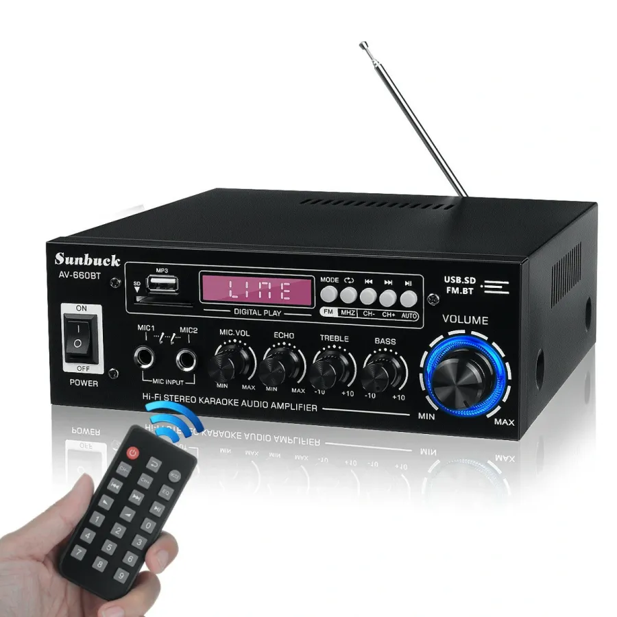 Sunbuck AV-660BT 2000W bluetooth 5.0 Audio Power Amplifier EQ Stereo AMP Car Home 2CH AUX USB FM Radio