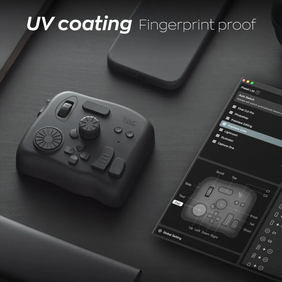 TourBox Elite Upgraded Bluetooth Controller for Photo Video Editing Color Grading Ilustration for Adobe Photoshop Lightroom Premiere Illustrator for Davinci Resolve After Effects Final Cut Pro Keyboard