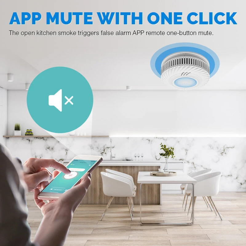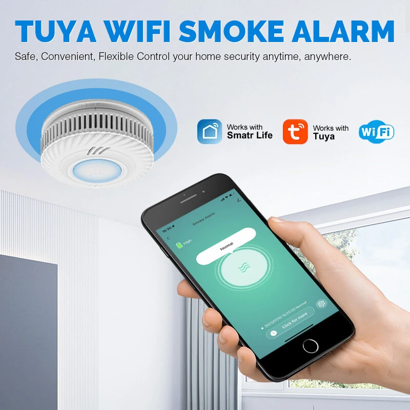 Tuya Smart WiFi Smoke Detector Long Battery Audible and Visual Alarm APP Remote Control 2.4G Wireless Home Kitchen Shop Fire Sound Alarm Sensor