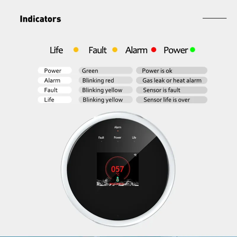Tuya Wi-Fi Gas Leak Detector Natural Gas LPG Alarm Heat Sensor TFT LCD Display Remote Monitoring Home Safety