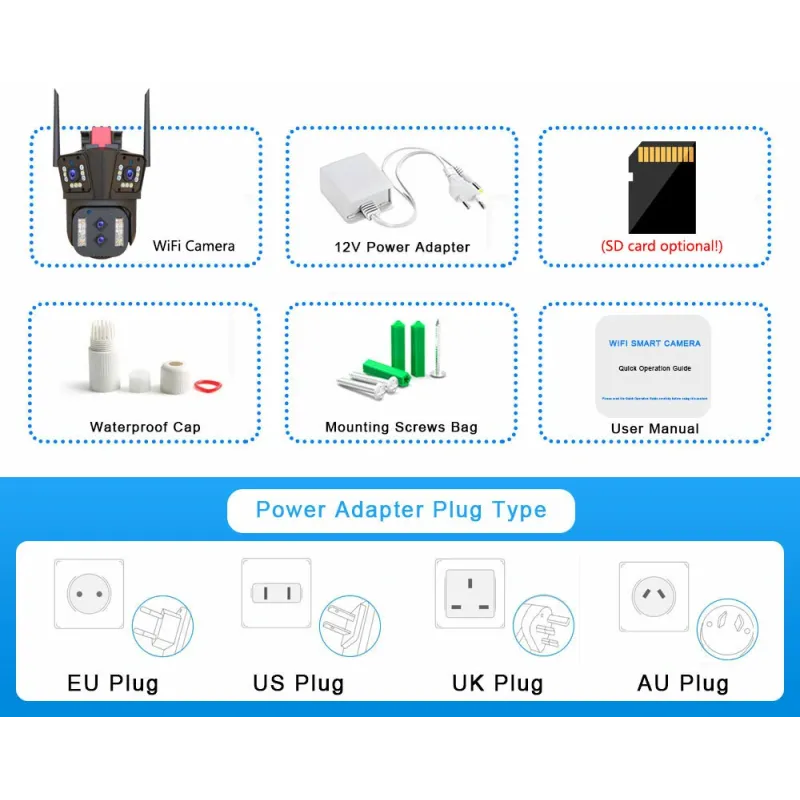 US Plug 12V Power Adapter for 8K HD 16MP 10X Zoom WiFi IP Camera