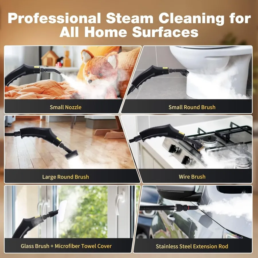 Yuriko 1200W Portable High Temperature Steam Cleaner, 3.5 Bar Power, 1.6 L Water Tank, 6 Levels Adjustable, Sterilization Pressure Jet Washer Machine for Home Car & Kitchen