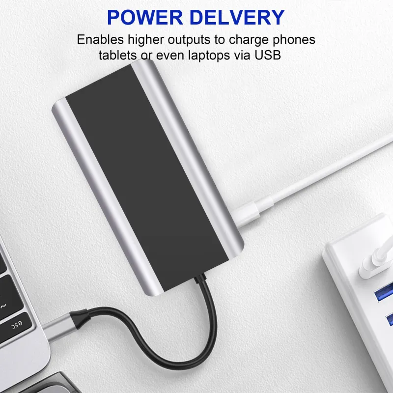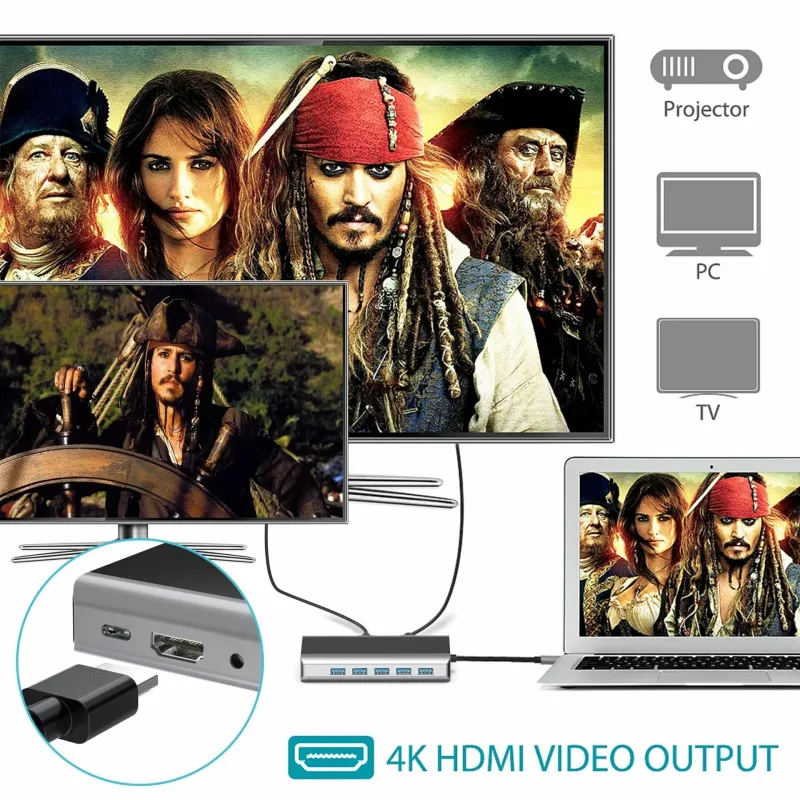 Bakeey FX14W 14 in 1 USB-C Hub Docking Station Adapter with 1*PD/ 1*SD/ 1*TF/ 5*USB 3.0/ 2*HDMI/1*LAN/ 1*VHA/ 1*Audio
