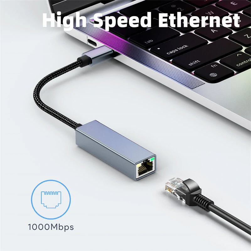 USB Type C to Gigabit Network Card Port Network Cable Adapter USB-C to RJ45 Driveless for Laptops Tablets