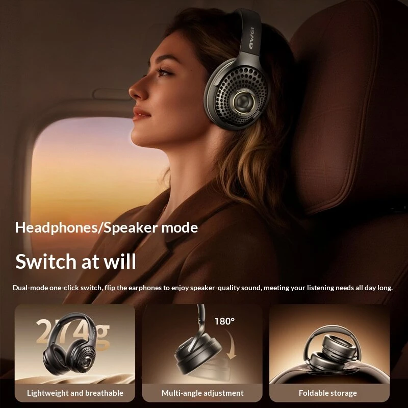 AWEI AT30 Wireless Speaker Headset bluetooth 6.0 Headphone 40mm Titanium-plated Composite Diaphragm HiFi Sound Foldable FM Mode Support AUX TF Card Playback Sports Headphones