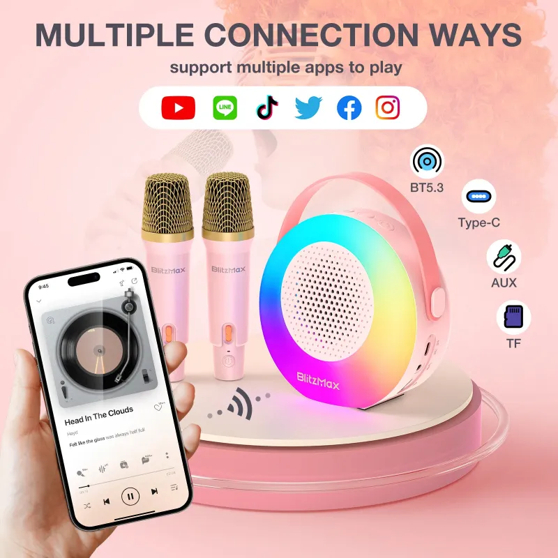 BlitzMax BM-K10 Kids Karaoke Machine Mini Portable bluetooth Speaker with 2 Wireless Microphones RGB Colorful Light Karaoke Toys Gifts Speaker for Home Party Birthday