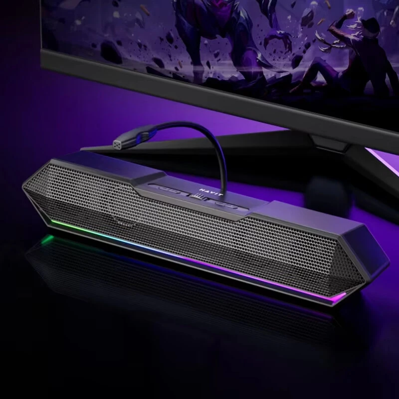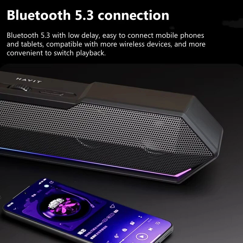 Havit M20 Desktop Speaker Wired bluetooth Soundbar Dual Full-frequency Speakers Dual Bass Diaphragm RGB Light EQ Tunning USB Power Supply Computer Speaker with External Microphone