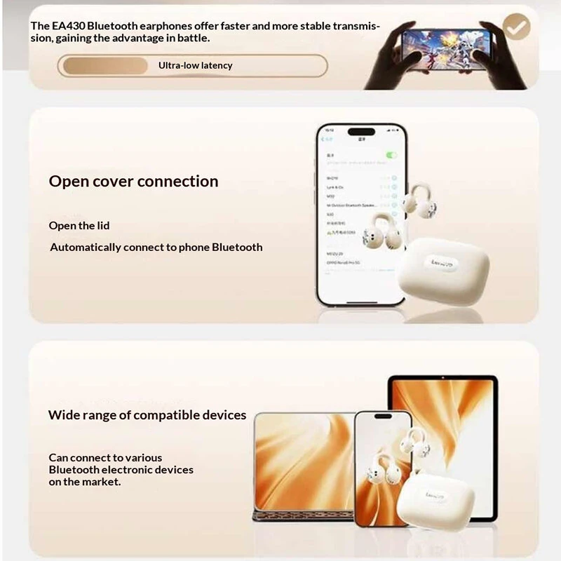 LENOVO EA430 Wireless bluetooth 5.4 Earphone 12mm Large Diaphragm Unit DT9.0 Transmission Tech HD Call Noise Cancelling 24H Playback Low Delay Open-ear Earclips Sports Headphones